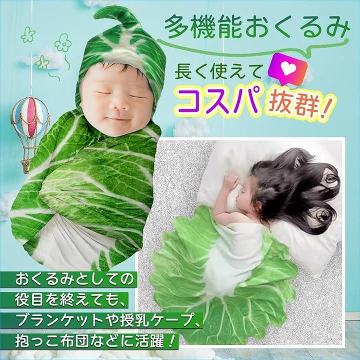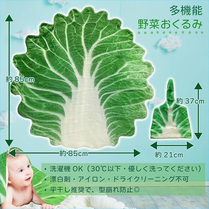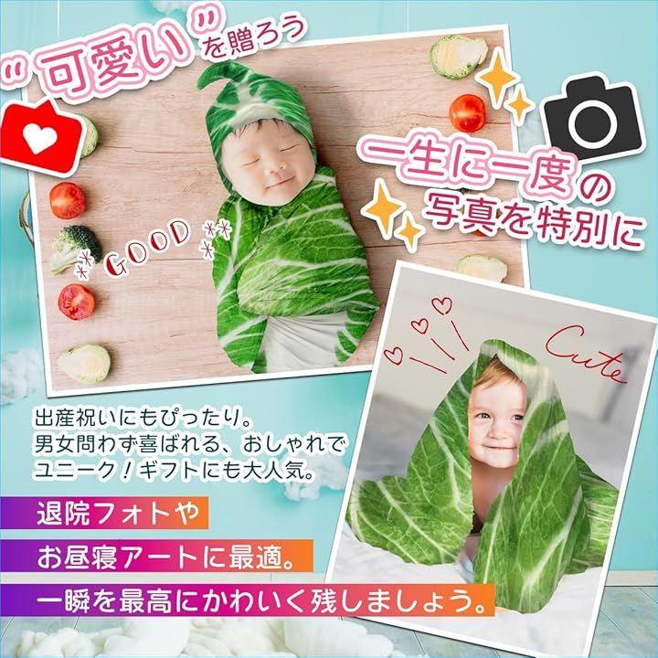 「キュートな2デザイン|白菜&スイカのリアルなおくるみ」 機能性だけでなく、思わず笑顔になるユニークな見た目も魅力。