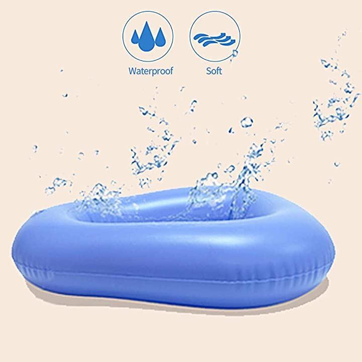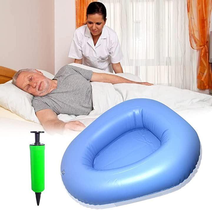 ・「セット内容」簡易ポータブルトイレ(空気入れポンプ付き) 「サイズ」(外寸)長さ約42cm x 幅約36cm、(内寸)長さ約13cm x 幅約22cm 「材質」PVC