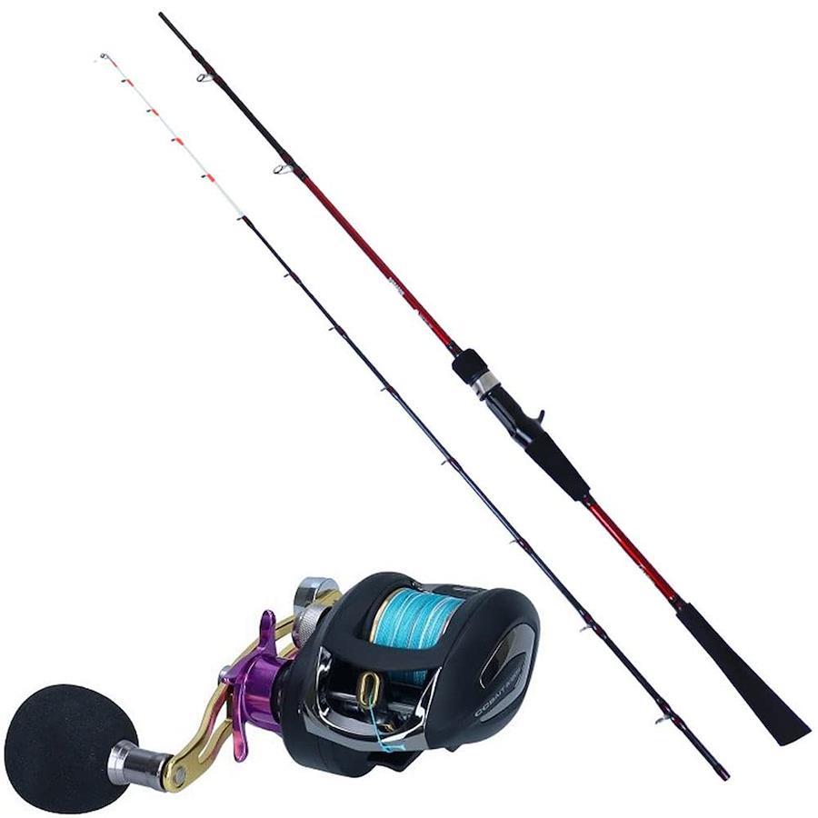 船テンヤタチウオに対応する船竿と、スポーツライン PEライン付ベイトリールの2点セットリールはラインが巻いているので、仕掛けとエサがあればすぐにお使い頂けますタチウオの小さなアタリも先調子で確実にキャッチ