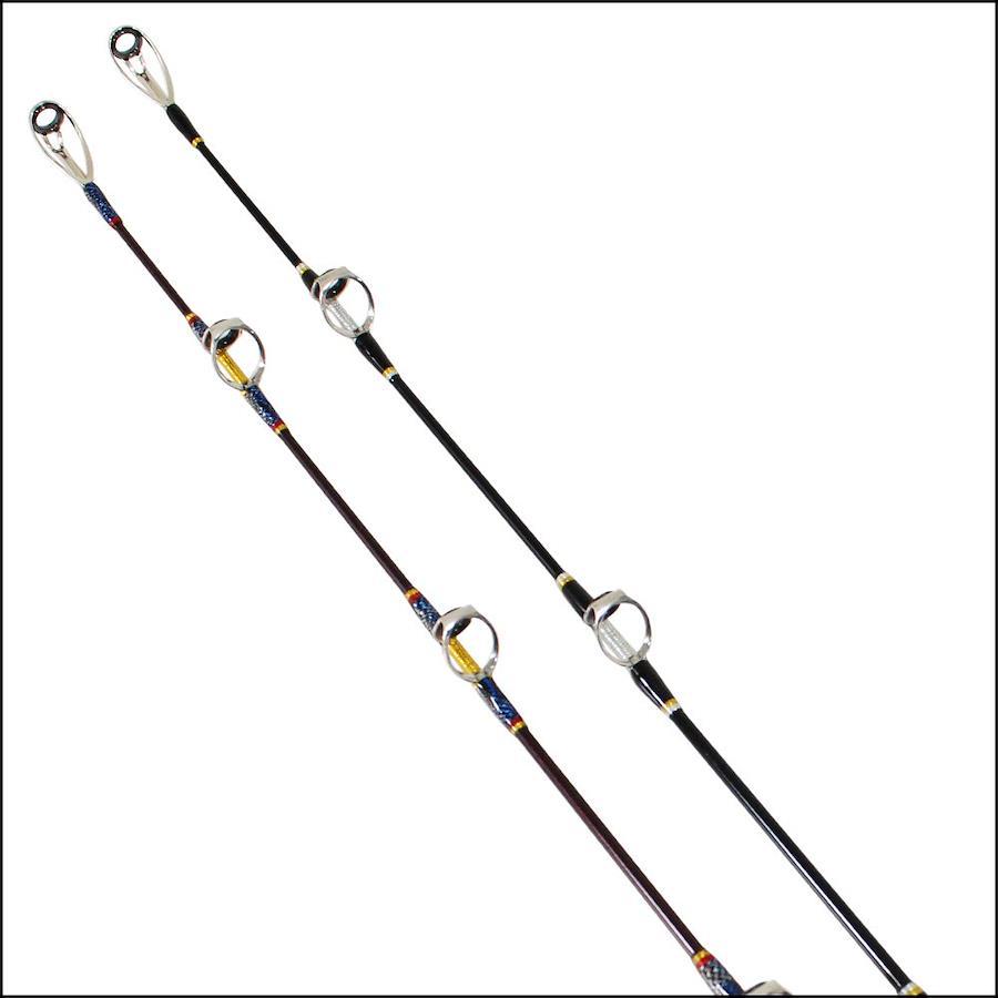 ■220-400号キハダマグロやカンパチなどの大型青物泳がせ、中深海、底物に最適なモデル【スペック】・全長:約222.5cm・仕舞寸法:184.5cm・標準自重:720g・先径/元径:3.8mm/17mm・グリップ径:27mm・適合オモリ:200~500号・適合ハリス:~50号・ガイド数:11