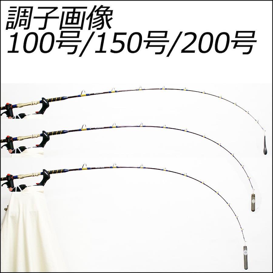 ■220-150ワラサ(メジロ)ブリクラスや大型生餌の泳がせ釣りなどに最適なモデル【スペック】・全長:約222.5cm・仕舞寸法:184.5cm・標準自重:515g・先径/元径:2.5mm/12.7mm・グリップ径:23mm・適合オモリ:100~200号・適合ハリス:~26号・ガイド数:11