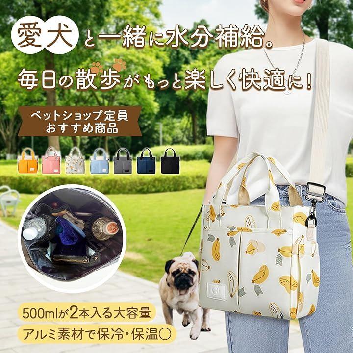 「ペットボトルが2本ぴったり収納できる専用ポケット」 飼い主さん用とわんちゃん用で、飲み物を分けて持ち運べてとっても便利。 さらに内側はアルミ素材で、保冷・保温機能付き。