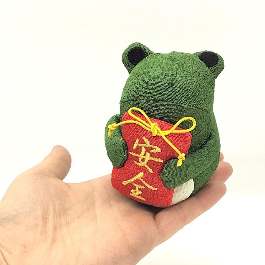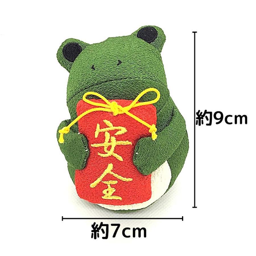 かえるシリーズの人気マスコット!ボールチェーン付きで鞄につけたりできます!かえるのいわれのひとつ、無事かえる!手には安全のお守りを持ってます!無事に家に帰れますように!