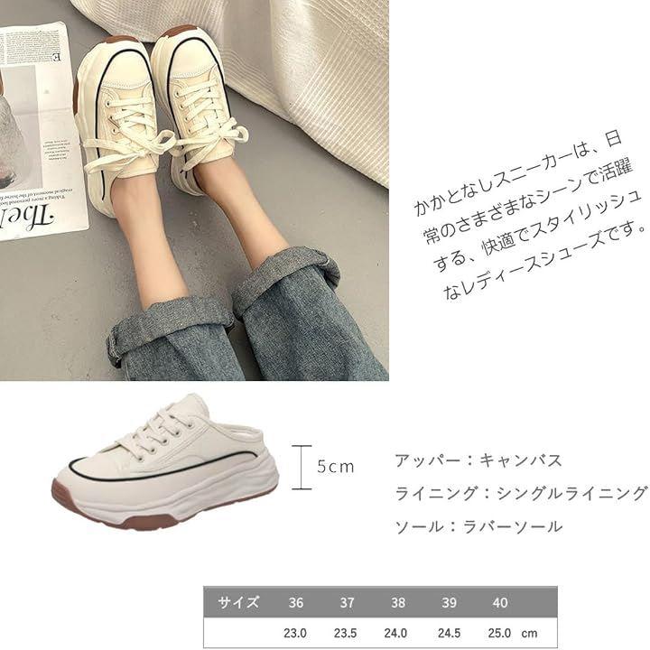 このかかとなしスニーカーは、日常のさまざまなシーンで活躍する、快適でスタイリッシュなレディースシューズです。