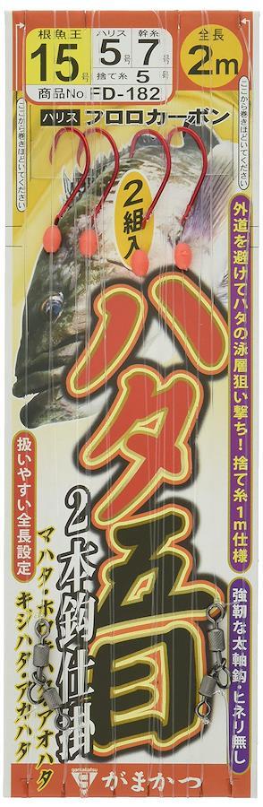 長めの捨て糸仕様の専用仕掛です。マハタをはじめハタ系の魚は底から若干浮いてエサを待ち構えています。そのタナをダイレクトに攻める1m捨て糸設定で外道をかわしながらハタ系のみを狙い撃ちできる仕掛です。掛かれば一気に根に向かうハタ系にも安心の太ハリス太軸鈎仕様です。活エサにも対応。ショートロッドでも扱いやすく、どなたでも手軽に超高級魚ハタを狙えます。