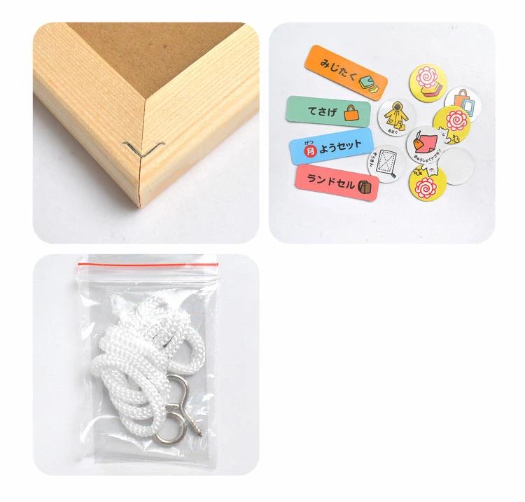 【こどもの準備ボード 】小学生になると準備するものが多くなり、1人では準備し忘れが多発!そんな悩みを解決してくれる現役ママの声から生まれたこどもの準備ボード。表面は黒板風でマグネットを貼り付けられ、裏面はホワイトボードで自由に書き込めるようになっています。小学校入学前の準備期から使えて練習ができます。入学祝いにもぴったり♪