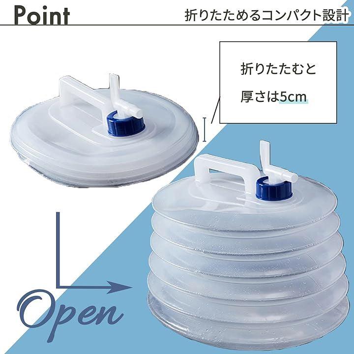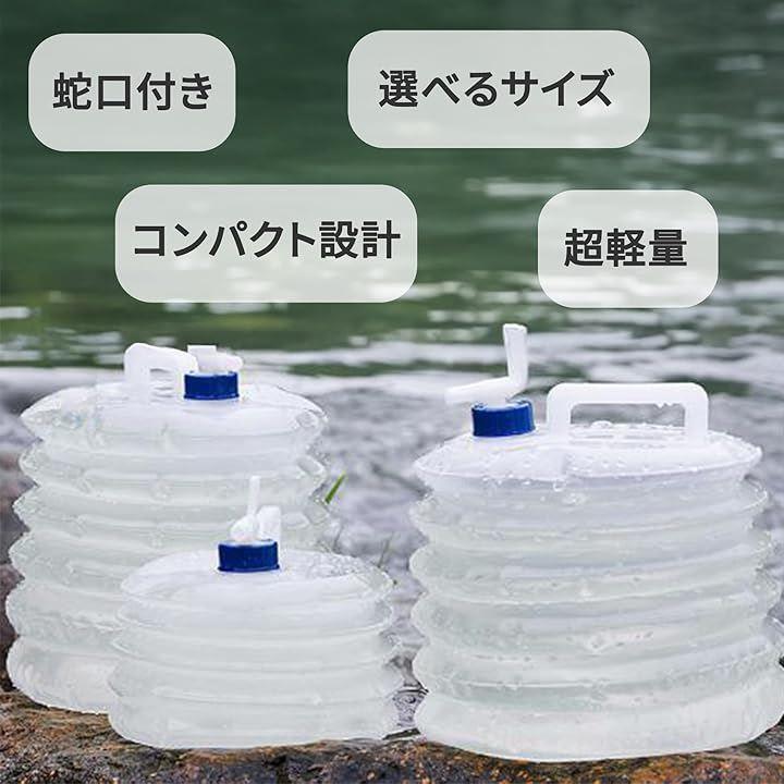 「コンパクト収納」このウォータータンクは、使用後に簡単に折りたたんでコンパクトに収納できるため、キャンプやアウトドアでの持ち運びが非常に便利です。