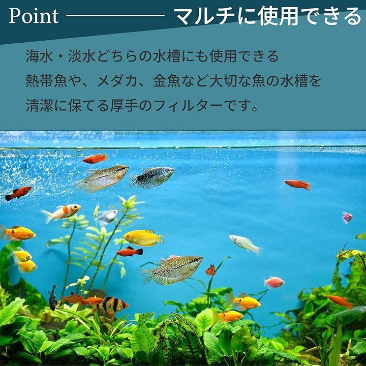 「多用途対応」このフィルターマットは、淡水・海水を問わず、さまざまな水槽に対応しています。