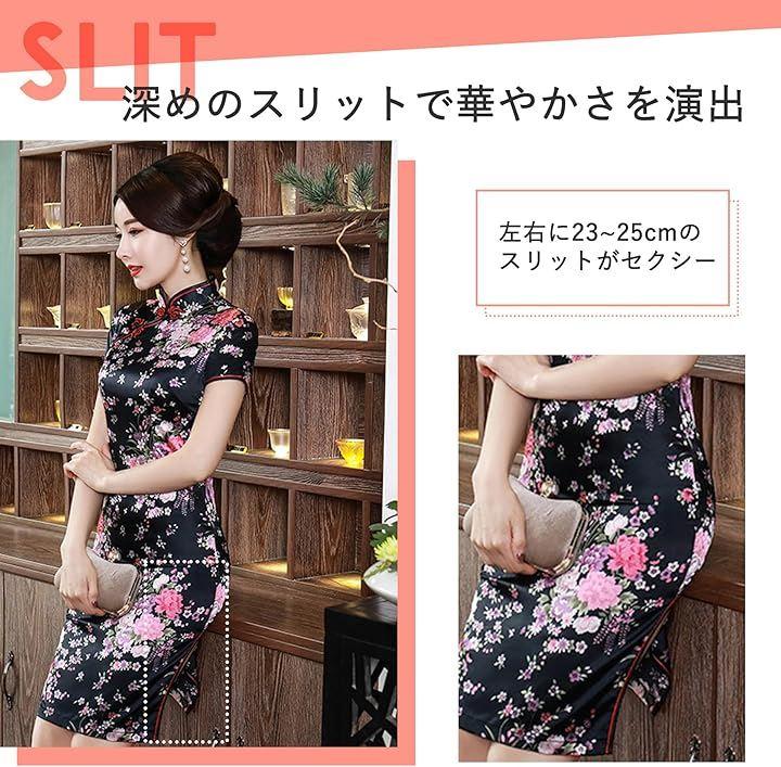 「魅力的なデザイン」このミニ丈のチャイナドレスのワンピースは、優雅な花柄と大胆なスリット(左右脇23~25cm)が特徴です。