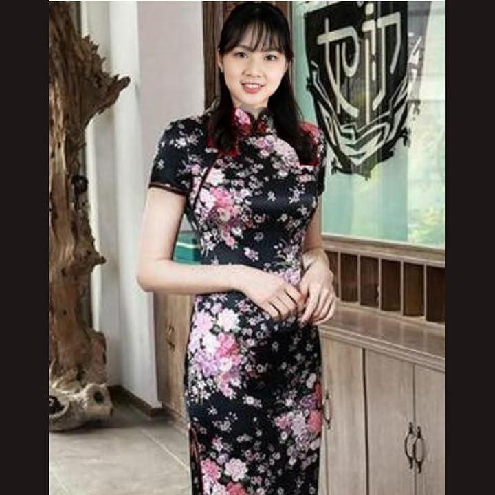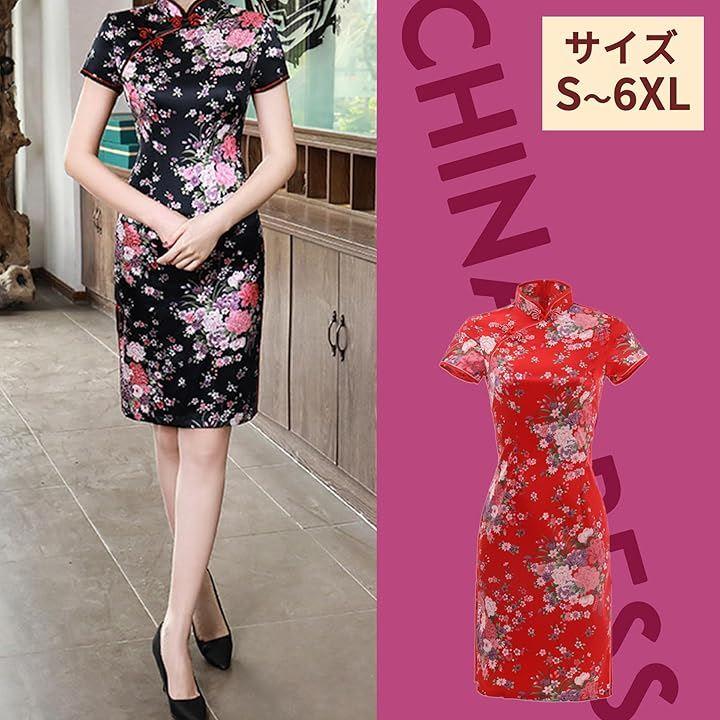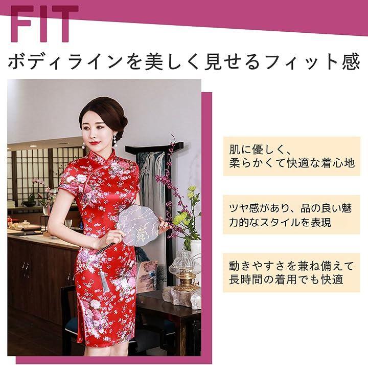 「魅力的なデザイン」このミニ丈のチャイナドレスのワンピースは、優雅な花柄と大胆なスリット(左右脇23~25cm)が特徴です。