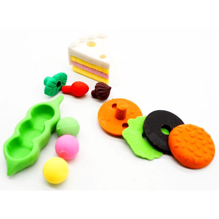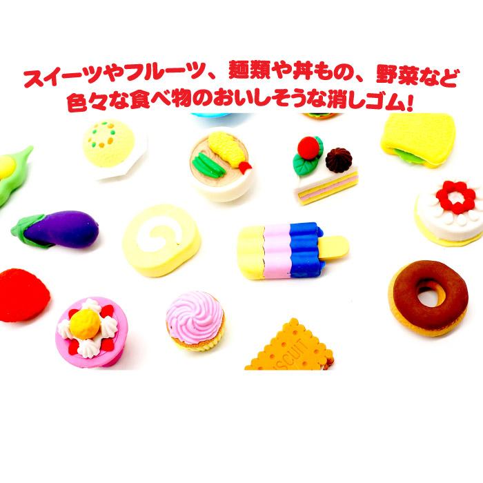スイーツやフルーツ、麺類や丼もの、野菜など色々な食べ物のおいしそうな消しゴムです!