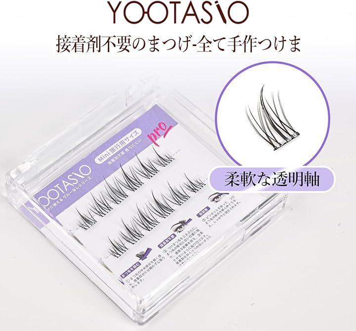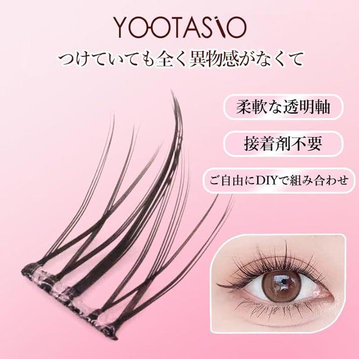 「柔軟な透明軸つけまつげ束感」YOOTASIOこのつけまつげは、アイドルグループのステージメイクからインスパイアされ、繊細な繊維とボリューム感で自然な束感を実現します。