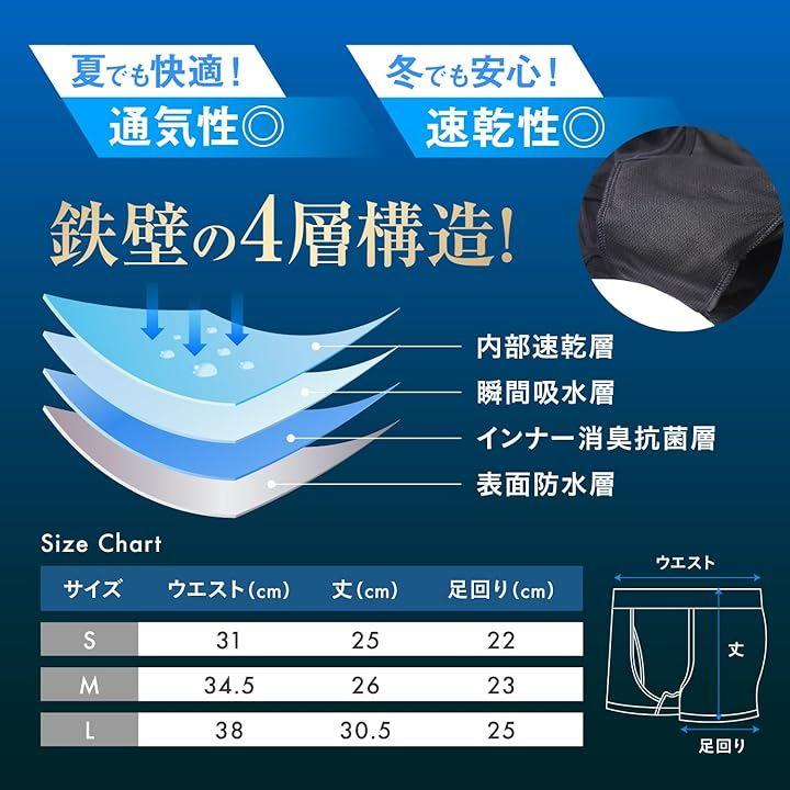 「4層構造・抗菌防水でしっかりガード」 拡散層・吸水層・防水層・消臭層の4層構造を採用。