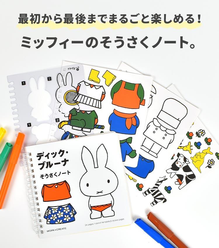 【ディック・ブルーナ そうさくノート】最初から最後までまるごと楽しめるミッフィーのそうさくノートです。ディック・ブルーナの創作手法を体験できる、お絵描きあそびのコンテンツが盛りだくさん!ギフトやプレゼントにもオススメです◎