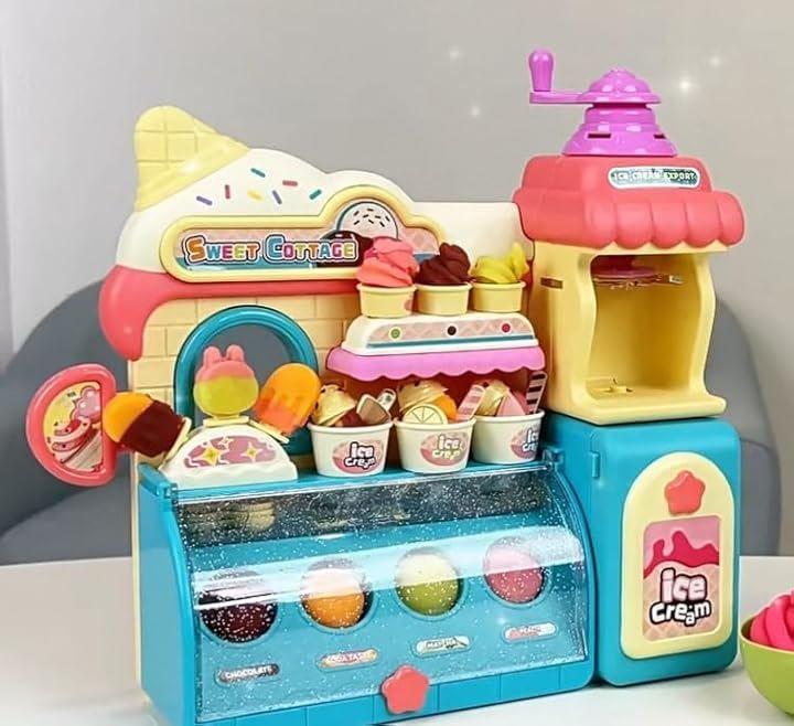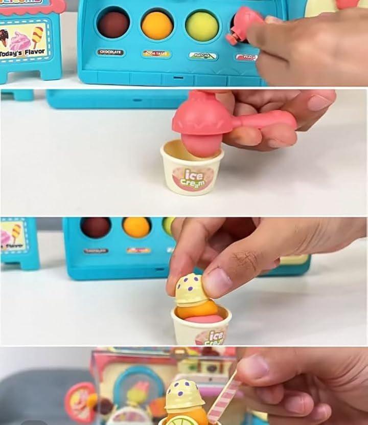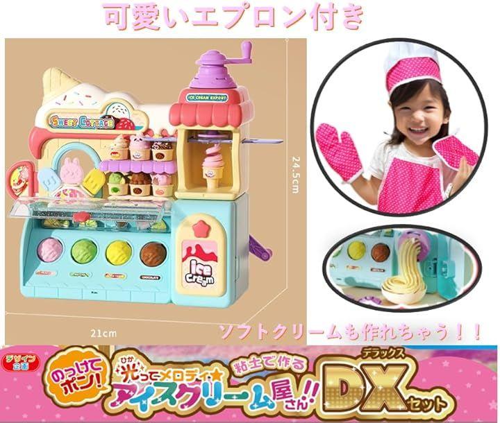 のっけってポン。光ってメロディ。アイスクリーム屋さん。。DXセット 粘土 ねんど 小麦粘土 ねんどおもちゃ 粘土遊び 押し型 ねんど道具 ごっこ遊び おままごとセット プレゼント 贈り物 おもちゃ 6歳以上