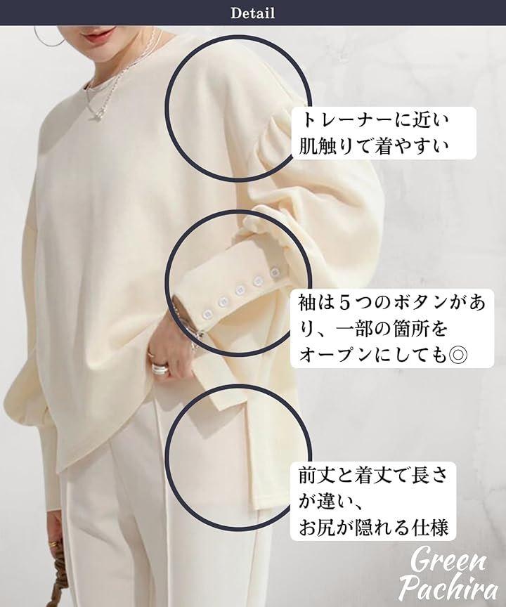 「嬉しい。お尻が隠れるトップス」◉ややゆとりのあるサイズ感で、少し長めの着丈で、ウエストやお尻周りなど、さりげなく 体型をカバーしてくれます。