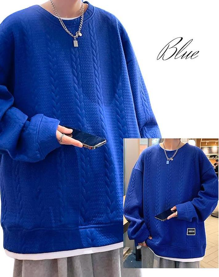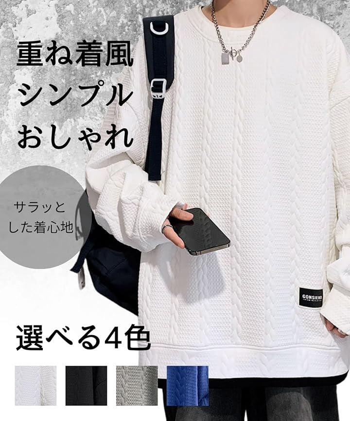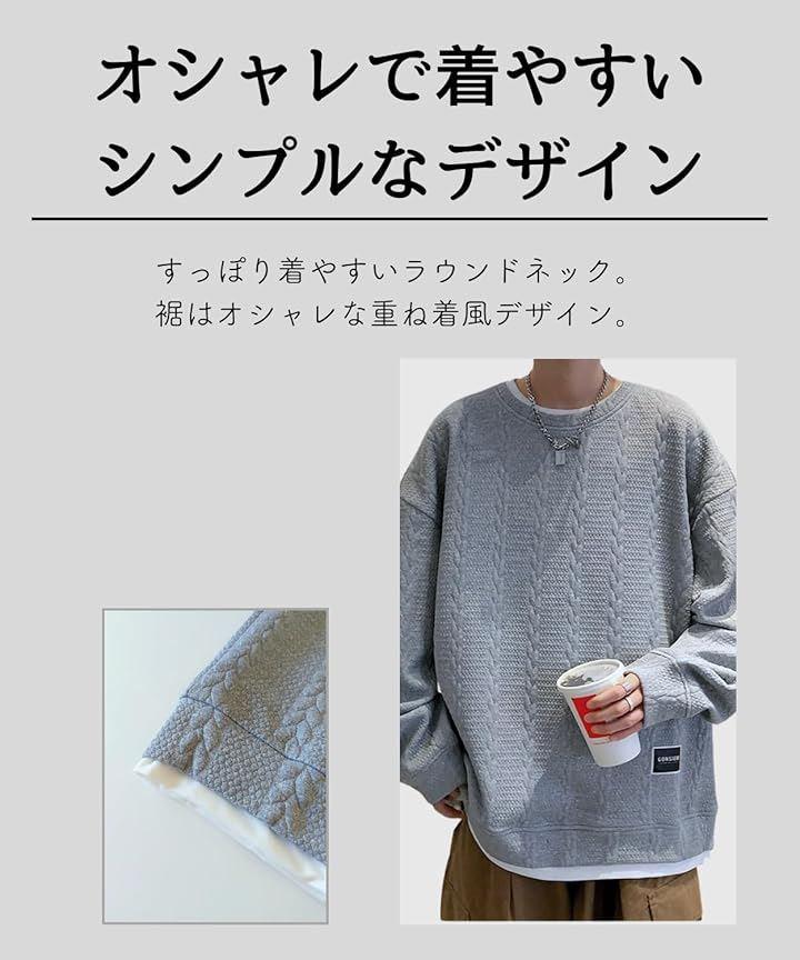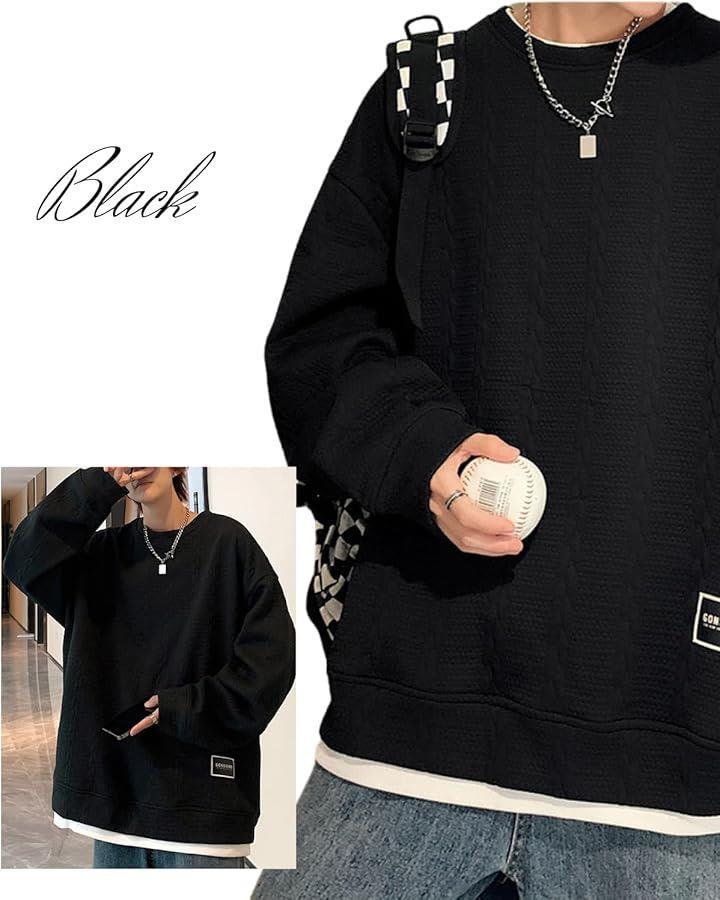 「ゆったりシルエットで快適な着心地」このゆったりトレーナーは、メンズ向けに作られたビッグシルエットで、重ね着風のデザインが特徴です。