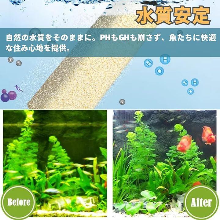 環境にやさしい素材で作られ、PH値やGH値を変化させず、水質を自然な状態に回復します。