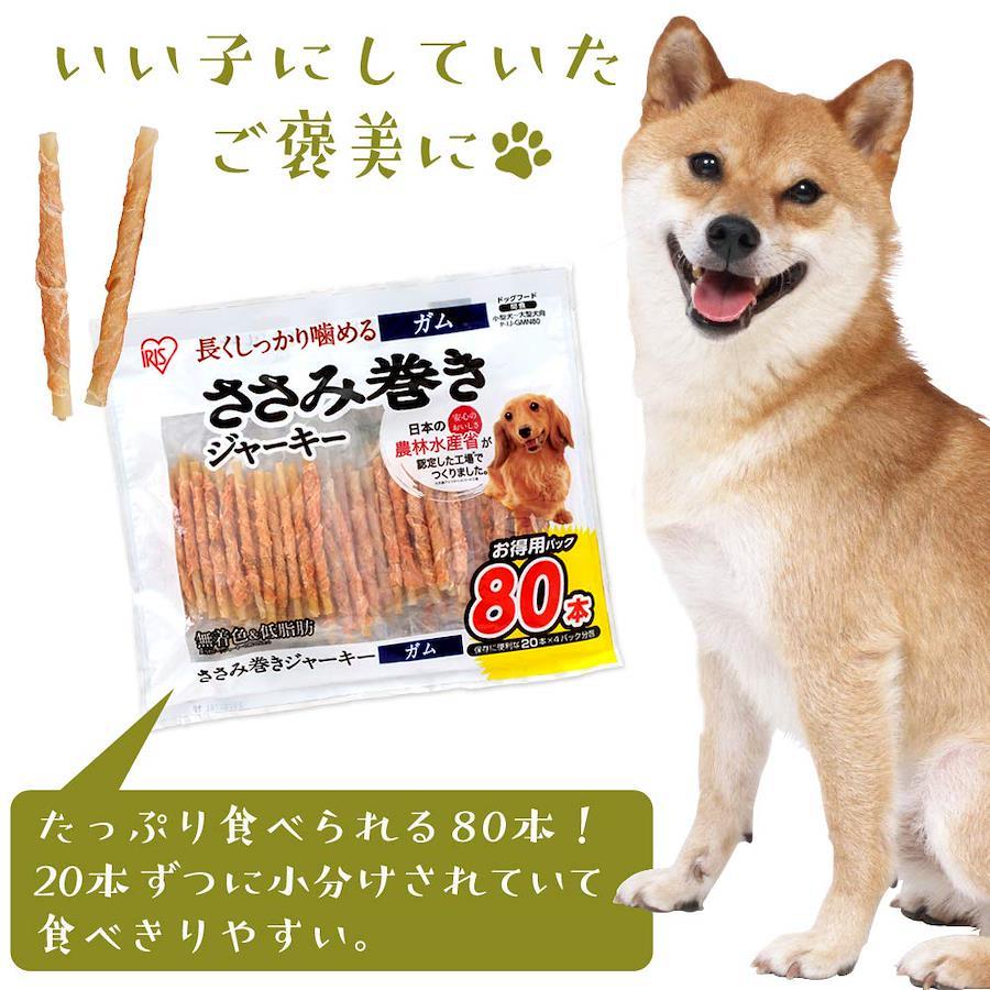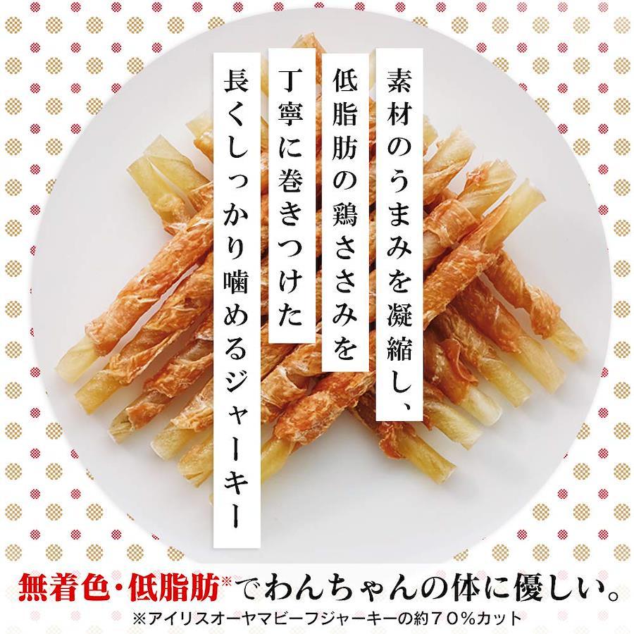 たっぷり噛めるささみ巻きジャーキーです。大切な愛犬に、安心の美味しさを。アイリスオーヤマの愛犬用ジャーキーは、徹底した衛生管理のもと製造しています。大切な家族だから、安心でおいしいものを与えたい。そんな飼い主さんの思いにおこたえします。