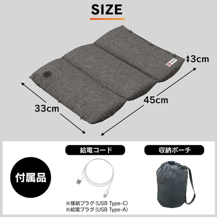 3営業日以内に発送≪新品未開封品≫:パソコンのUSBポートやモバイルバッテリーからの給電が可能で、様々なシーンで活躍する3wayヒートクッションです。クッション・ハンドウォーマー・抱きまくらの3way仕様。コンパクトに収納できるので持ち運びも便利です。熱伝導性の高いカーボンナノチューブを採用。強度に優れており、軽く柔らかい触り心地です。コンパクトに折りたたんで収納できるポーチ付きです。生地は撥水加工をしているため、屋外での使用も安心です。