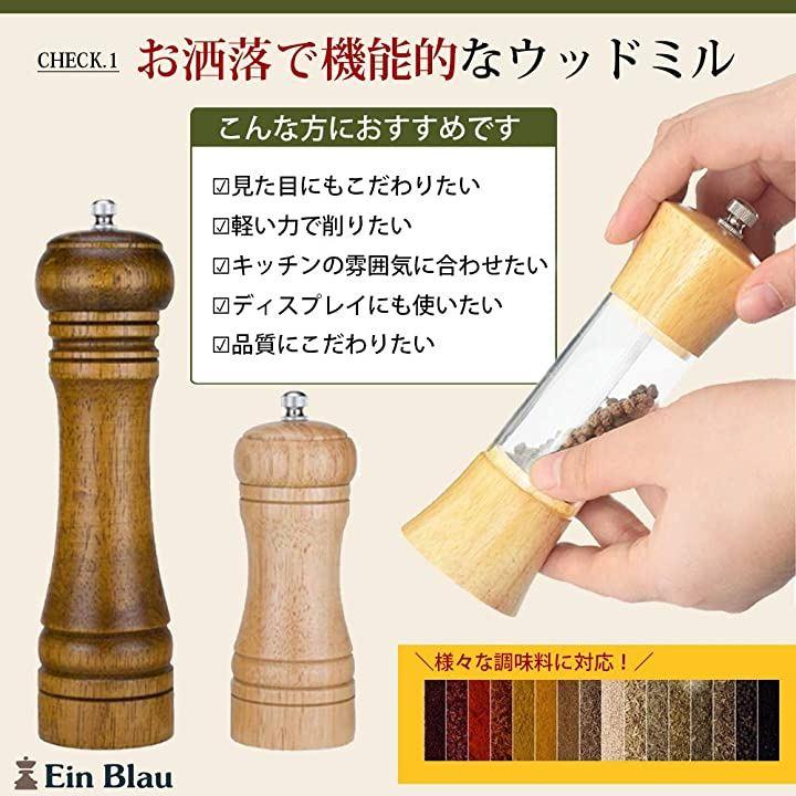 用途天然オークの質感あるEinBlauのペッパーミルは、料理人のプロも愛用する便利なキッチンアイテム。