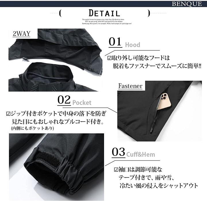 *カラー:ブラック、ネイビー、ブルー*サイズ:M,L,XL,2XL「ジャケット」着丈/肩幅/胸囲/袖丈[M]:68/46.5/110/61.5[L]:70.5/48/114/63[XL]:73/49.5/118/64.5[2XL]:75.5/51/122/66