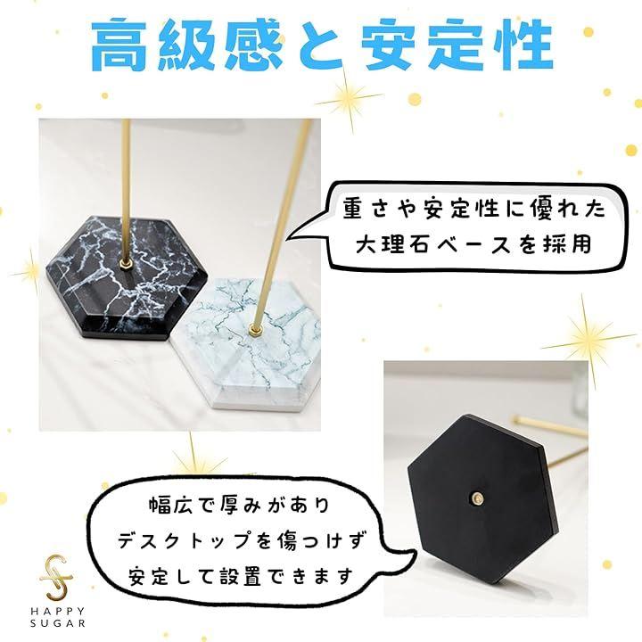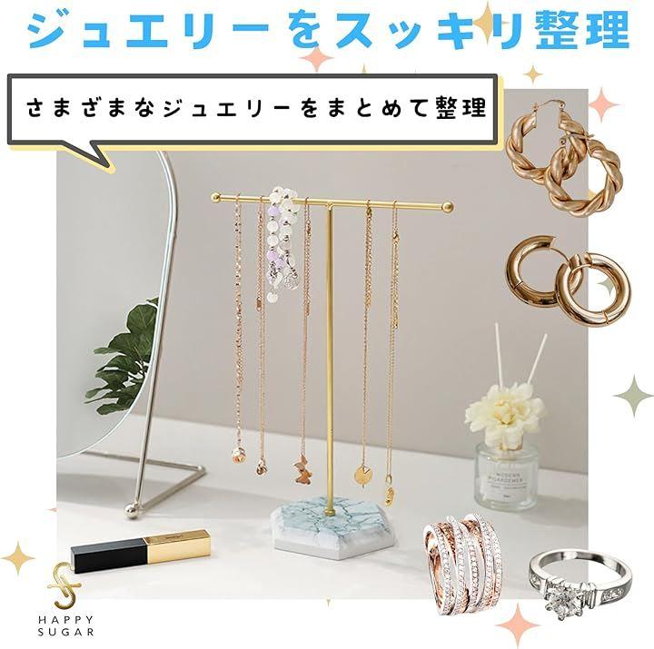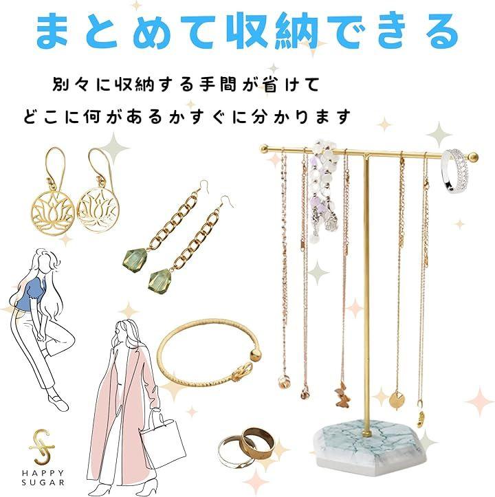「複数のジュエリーを一つにまとめて収納」ピアス、ネックレス、指輪など、複数の種類のジュエリーを一つのスタンドにまとめて収納できます。