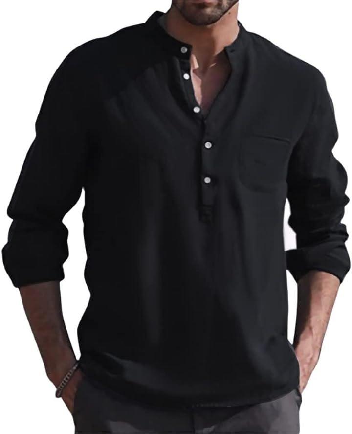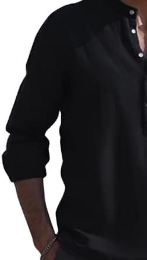 *周りと差をつけた着こなしが楽しめるヘンリーネックシャツ。