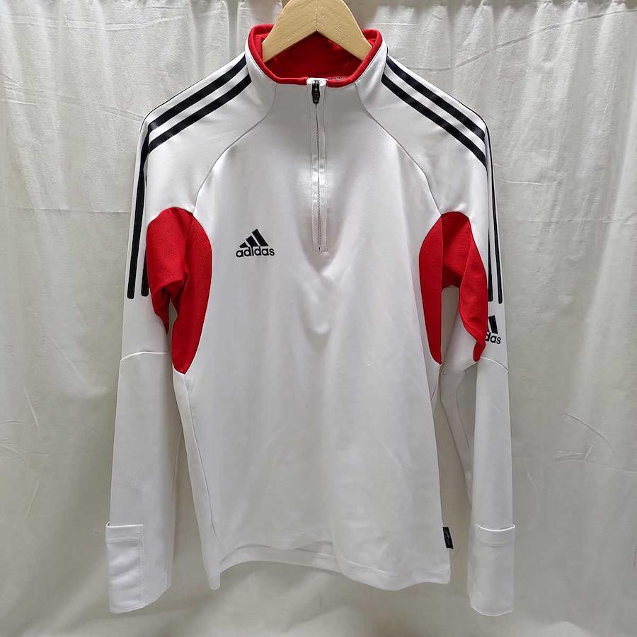 [タイプ] アディダス adidas ハーフジップ ジャージ トレーニングウェアー スウェット ホワイト サイズM スポーツウェア AFT001[対象] メンズ[サイズ] 身幅約47cm/着丈約71cm[状態] 大きなダメージはありませんが、軽いほつれや毛羽立ち、使用感などがみられます。