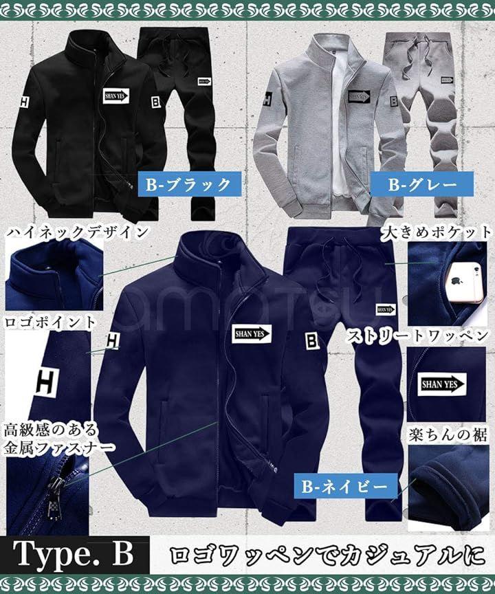「3つのデザインから選べるセットアップ」カジュアルからビター系まで、自分の好み合ったデザインから選べるセットアップ。