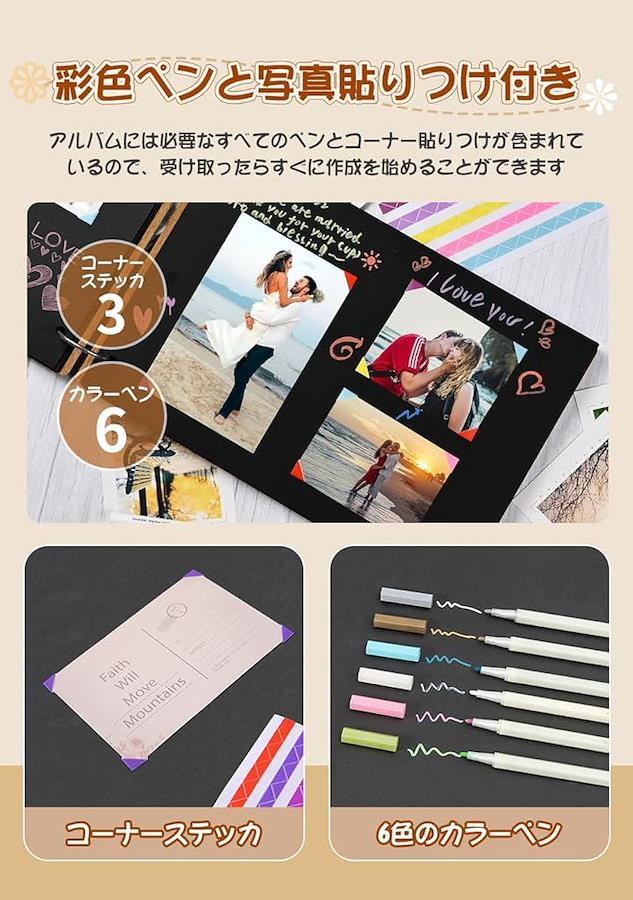 「心のこもったデザイン」アルバムには黒い台紙が39枚ついており、たくさんの写真を保存することができます、台紙の不足を心配する必要はありません。