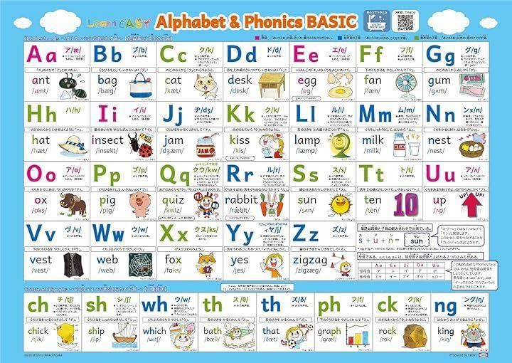 アルファベット26文字と二重音字のフォニックスが学べるポスター。