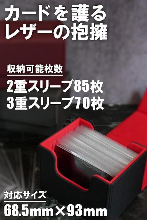「多重スリーブも収納可能な大容量」主流になっている2重スリーブ、3重スリーブでも収まる余裕のあるサイズのトレカケースです。