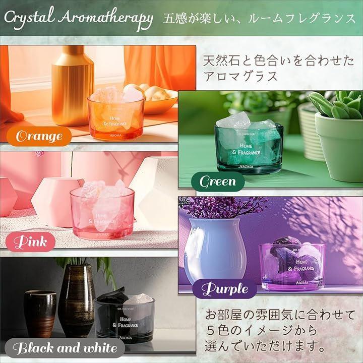 「サイズ」直径:約7.5cmx高さ:5cm「商品仕様」クリスタル天然石、アロマグラス「カラーバリエーション」グリーン/ピンク/オレンジ/パープル/ブラック&ホワイト