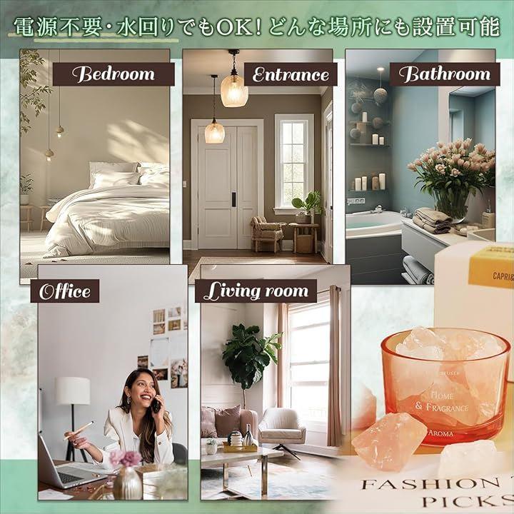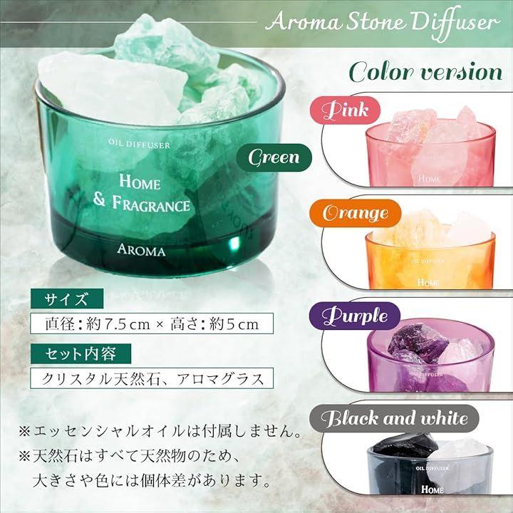 「アロマストーン 天然石 ディフューザー」 このストーンディフューザーは、水晶などの天然石を使用し、エッセンシャルオイルを数滴垂らすだけで、自然な香りが部屋全体に広がります。