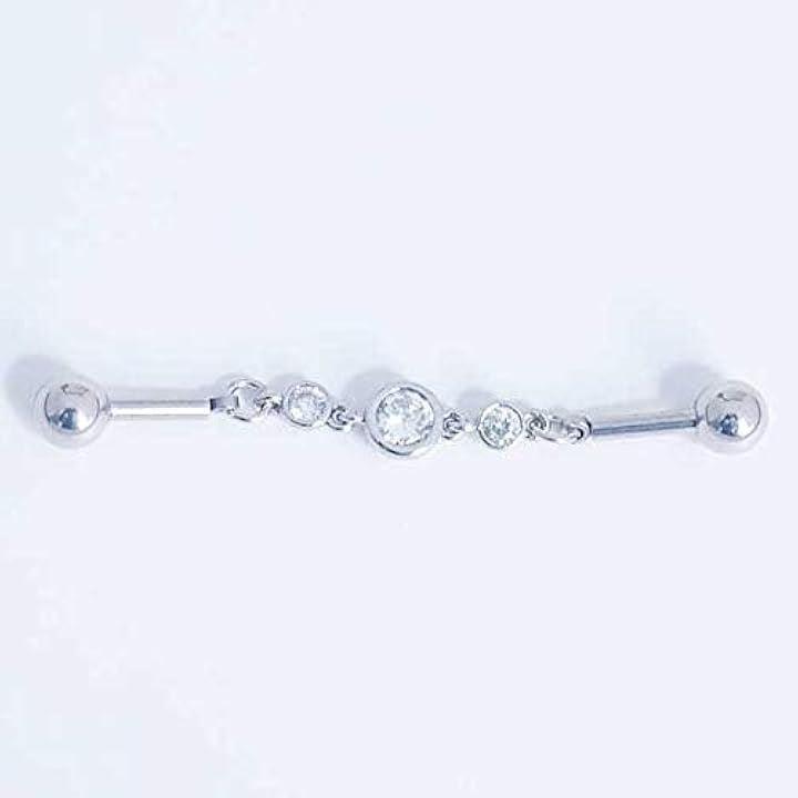 「インダストリアルバーピアスサイズ」バーの厚さ:14GA/1.6mm;バーの長さ:38mm;ボールサイズ:5mm、工業用ピアスの標準サイズ。