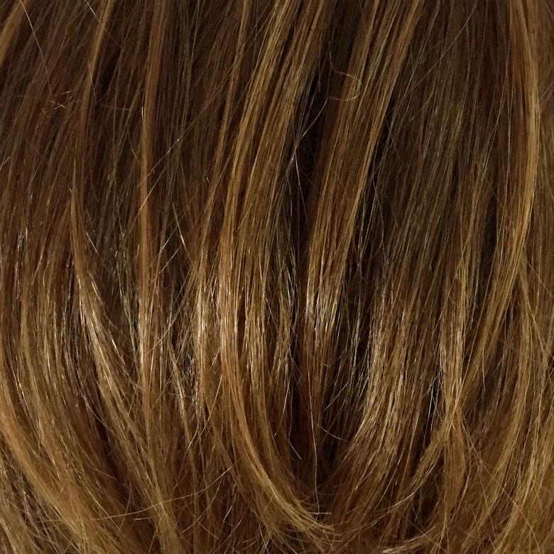 明るいイエロー系ブラウン。毛先に向かって明るくなっています。