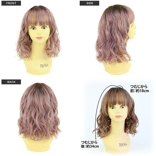 プリシラグラデーションカラーフルウィッグ自毛を見せずにスッポリとかぶる「かつら」タイプのウィッグ