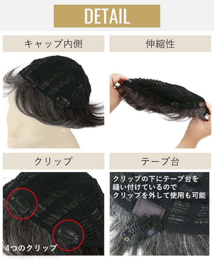 ウィッグ単体でも装着できますが、クリップの下にテープ台を縫い付けているので、クリップを取り外し、医療用テープをテープ台に貼って頭皮に直接貼り付けることもできます。