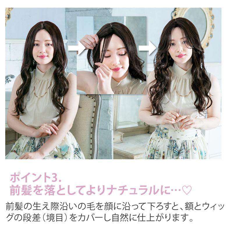 前髪の生え際沿いの毛を顔に沿って下ろすと、よりナチュラルに。