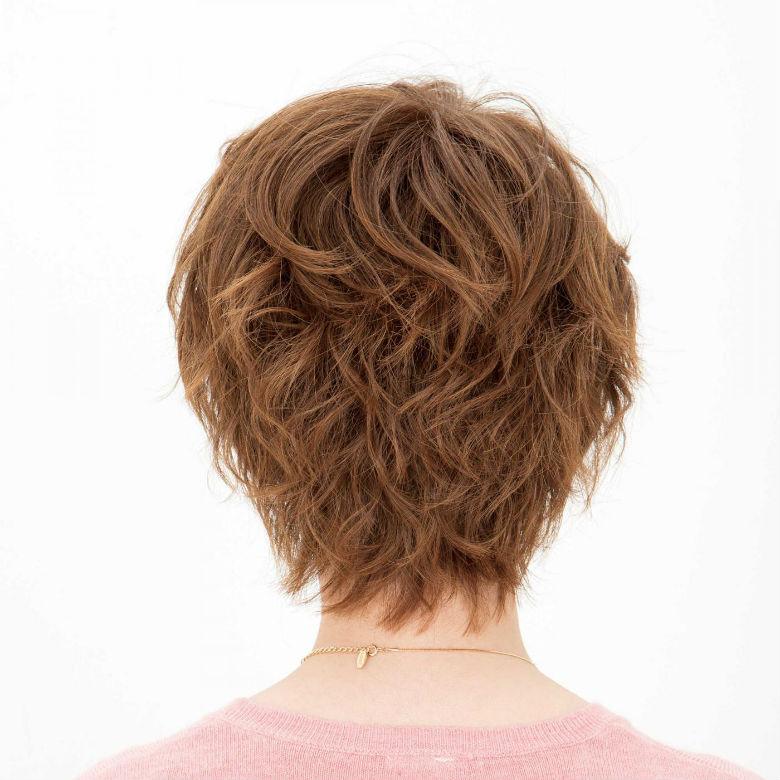 ふんわり丸いシルエットが女性らしい可愛さを演出する無造作ショートスタイル。