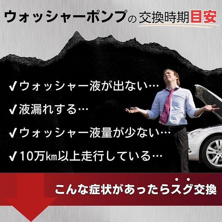 交換時期の目安 ウォッシャ液が出ない、液漏れやウォッシャー液の量が少ない、10万km以上走行しているなどの症状が見受けられた場合、ウォッシャーポンプの交換をご検討ください。