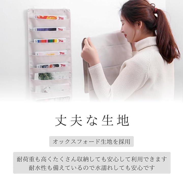 「多用途な収納ポケット」壁やドアに簡単に取り付けられ、郵便物や書類、小物、雑誌などの収納に最適です。