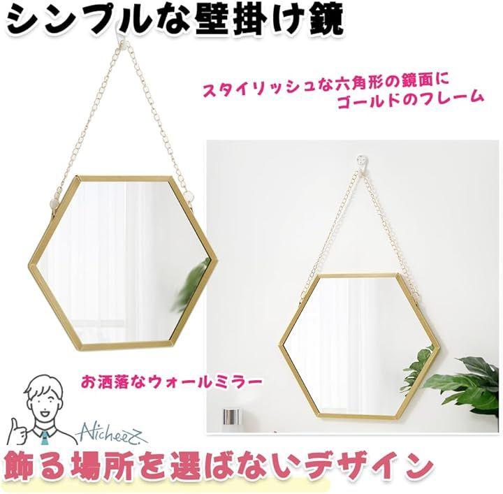 スタイリッシュな六角形の鏡面にゴールドのフレームがポイント。