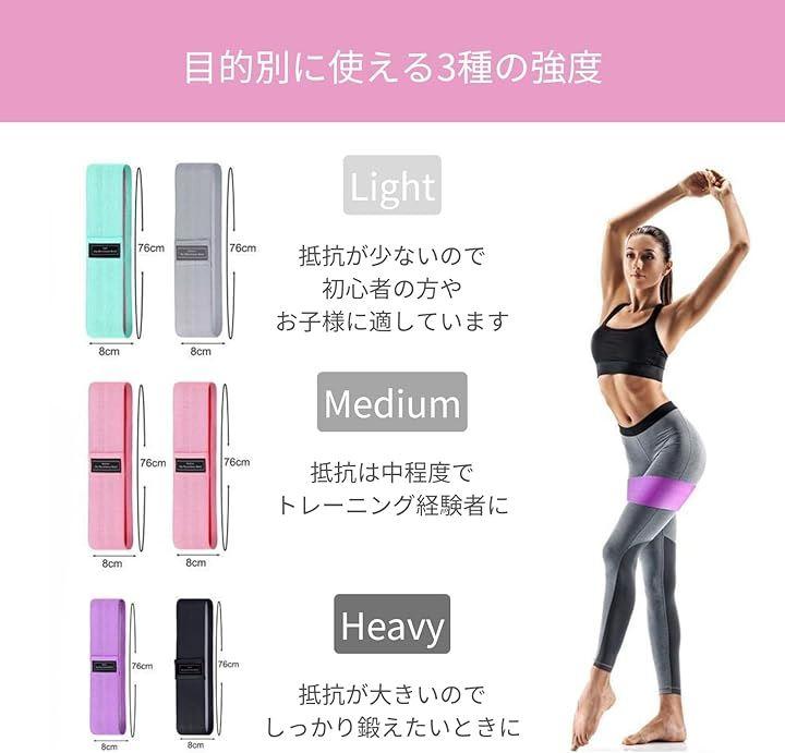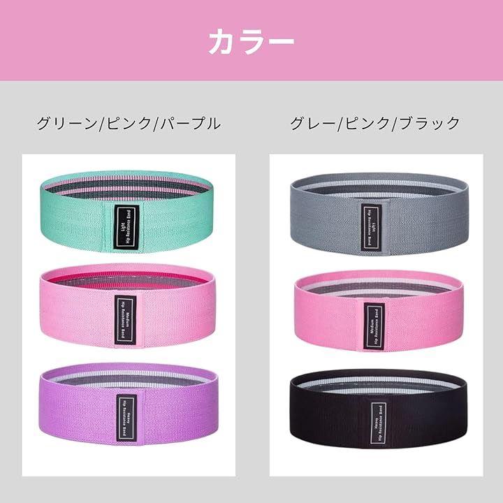 「自宅で手軽にトレーニング」3段階の強度別エクササイズバンドで、理想のボディラインを叶えましょう。