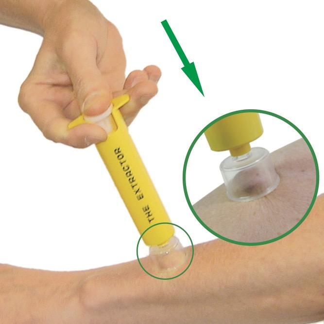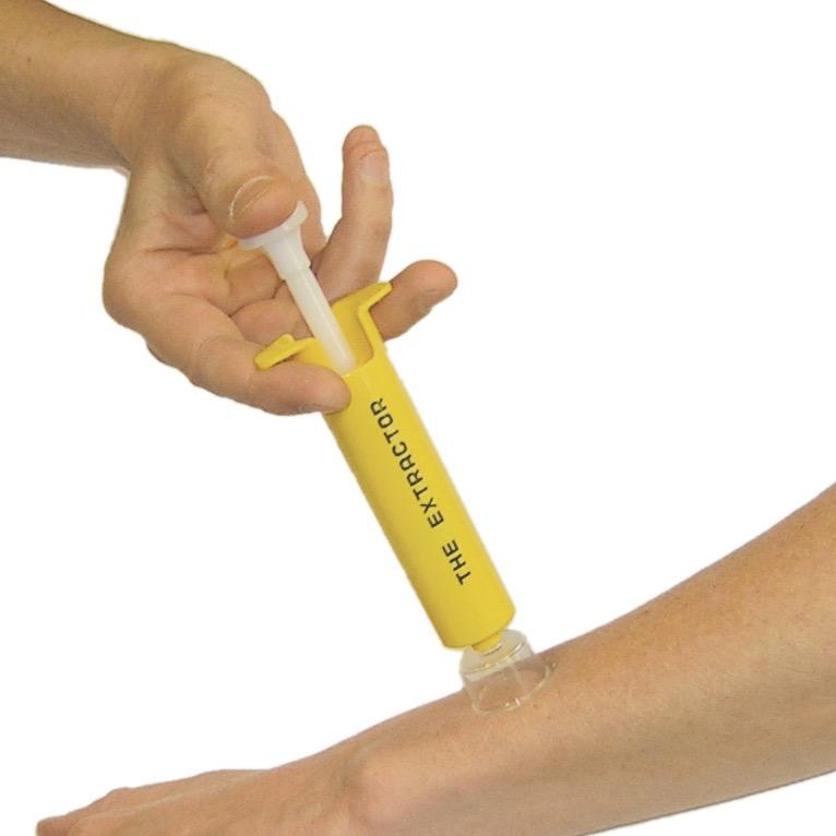 刺された傷口に合わせ大小4つの吸引カップが付いています(5通りに使用できます)。ポンプのシリンダー内に特殊の弁があり、吸引時の空気の流通が非常に速く、強力な吸引作用で毒液や毒針を体外に抽出します。刺した後、針を残すミツバチ等に有効です。この商品はアンドレ エメリットによって発明され、フランスで1901年から続いている最も権威ある発明コンクール《コンクール・レピーヌ》において、1983年に金賞を受賞しています。フランスで発売されてから約30年世界40カ国以上で使われ続けています。