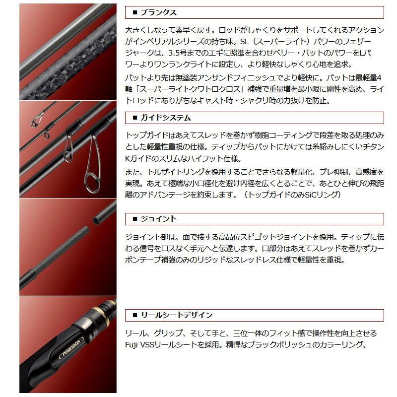 3.5号までのエギに照準を合わせたSL(スーパーライト)パワー。 羽根のような自重の軽さ&軽い力でスムーズにしなり、かつ素早くしなり戻る絶妙なアクションが、これまでにない超軽快なしゃくり心地を実現。1キャストあたり多ければ数十回にも及ぶしゃくりの負荷がラクになることで、集中力を要する、繊細で巧みなエギの操作を長時間持続することが容易に。 また、自重の軽さがもたらす超鋭敏な感度もフェザージャークの持ち味。ラインの動きを目で見て着底やアタリを察知できないナイトゲームにおいて絶大なアドバンテージをもたらします。 8'6"は取り回しに優れ、同時に、広範囲をサーチするためのロングキャストや、風の影響を軽減するための的確なラインメンディングに高レベル対応する超スタンダードレングス。湾内の小さな漁港から、外洋に面したダイナミックな磯場まで、あらゆる状況で活躍します。