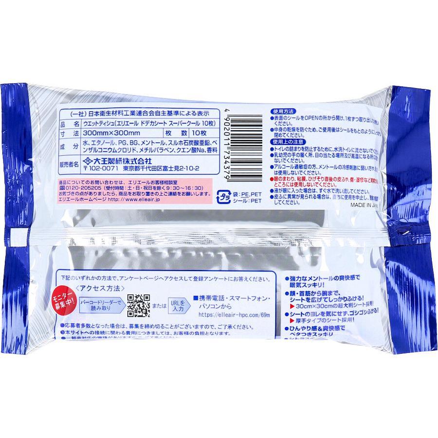 強力なメントールの爽快感で眠気スッキリ!メントールをノーマルタイプの3倍配合し、やみつきになりそうな爽快感です。●顔がすっぽり収まる30×30cmの大判シートサイズの汗ふきシートです。●両手を覆って有り余るサイズだから、1枚で全身しっかり拭けます。●顔もボディもゴシゴシ拭ける、やわらかく厚みのある素材です。●ひんやり感&爽快感でベタつきスッキリ。●爽やかなシトラスの香り。