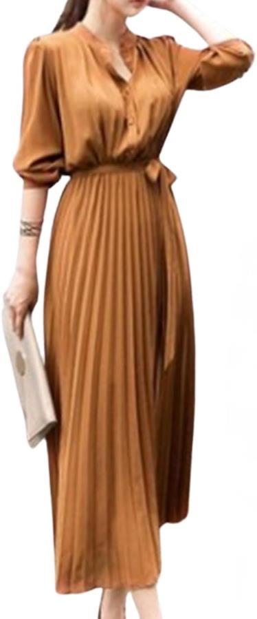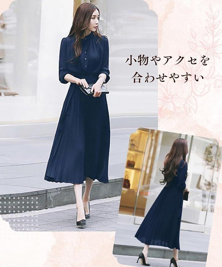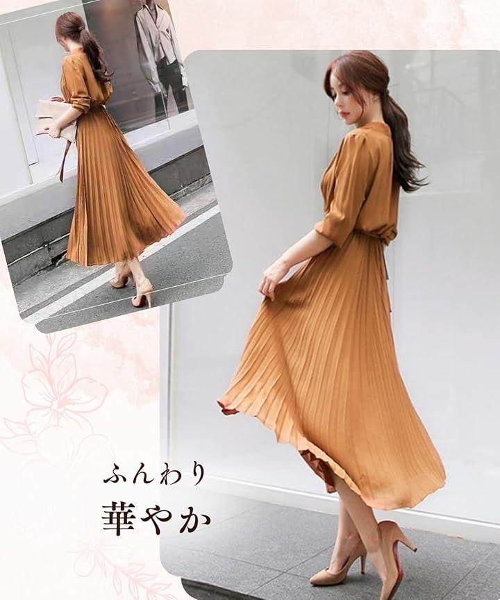 「上品でエレガントなデザイン」この秋、上品でエレガントな「レディース ロングワンピース」で、大人の魅力を引き立てませんか?なんといっても生地を贅沢に使ったプリーツスカートが特徴的で、さらっとした薄手の生地なので重たくなりません。