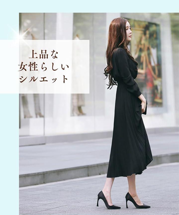 「着やせ効果抜群」付属のリボンベルトでウエストマークでき、ハイウエストデザインが美しいシルエットを作り出します。